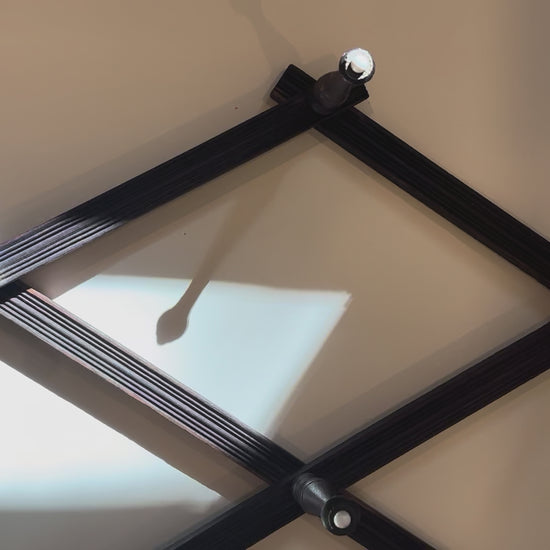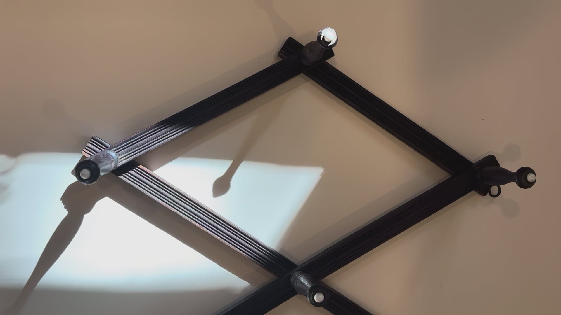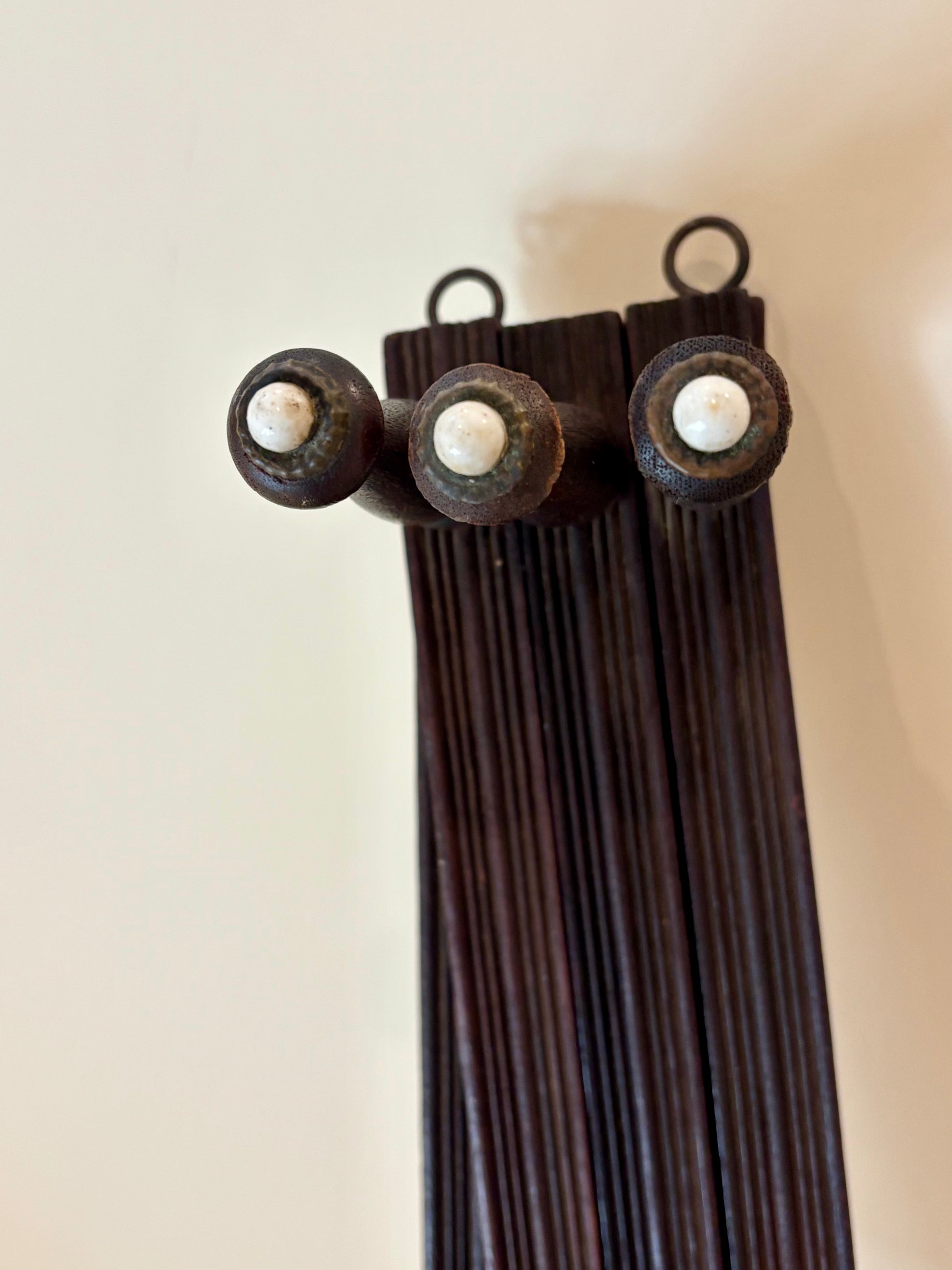 Antique victorian ten peg accordion rack with porcelain buttons surrounded by brass. I envision this in a mudroom to add vintage charm or a small entryway or nursery. It is ready to hang but it is delicate due to its late 1800s age. When expanded it is roughly 17" h x 36" l x 5" d