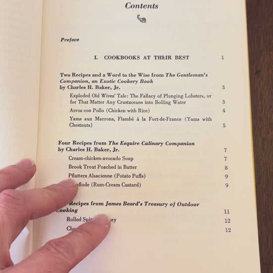 Published in 1964, this cookbook, "Great Recipes from the World's Great Cooks" features a compilation of favorite recipes from renowned chefs at the time. If you remove the jacket, you will find a cheery yellow hardcover, which will brighten up your bookshelf or kitchen counter! 5.5" x 8.25"
