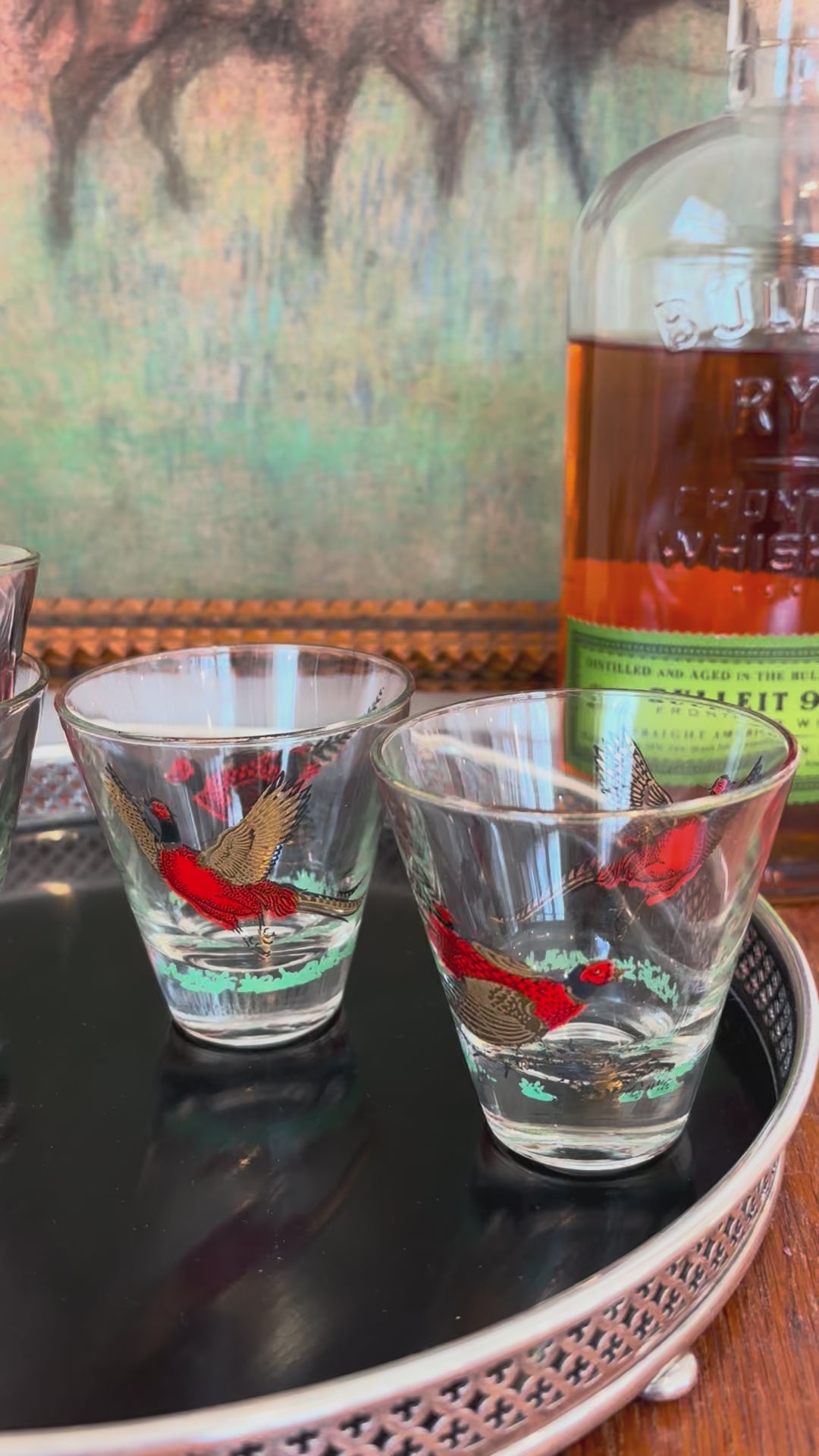 Set of Four Vintage Pheasant Whiskey Glasses