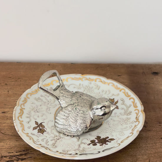 Vintage sparrow bird bottle opener marked underneath made by Bayerisch Metallwaren Fabrik (BMF) in West Germany. These were produced in the 1960s-1980s. A versatile and functional piece, yet completely charming as a display piece! There is some oxidation to the metal, as noticed with green markings. 3.25" l x 2.5" w x 2" h