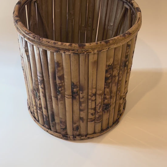 Vintage Burnt Bamboo Wastebasket