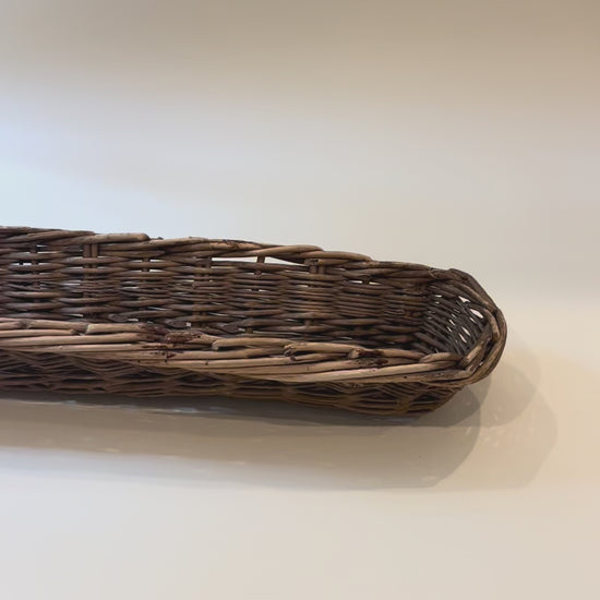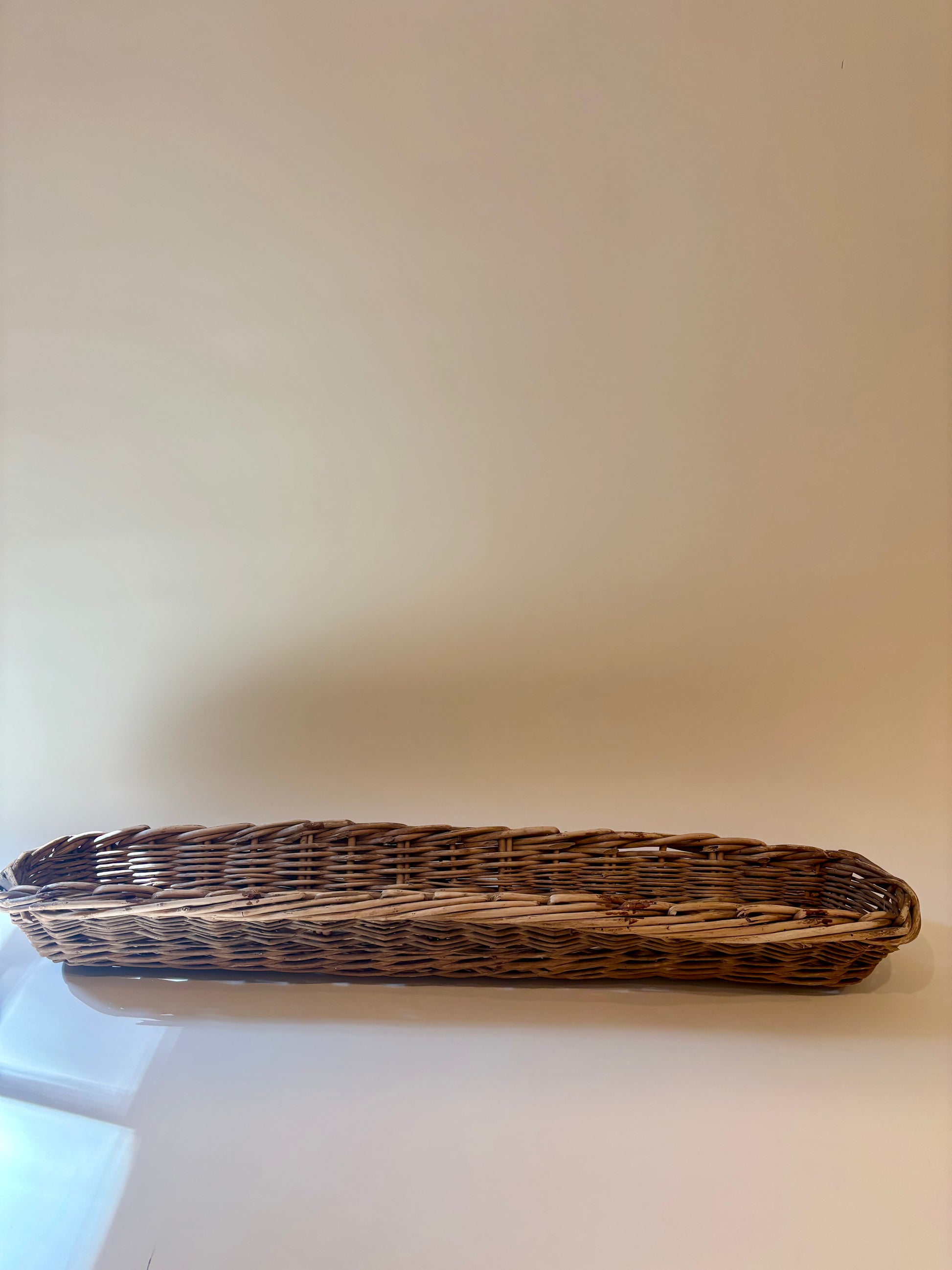 Vintage, possibly antique, French bread/baguette basket. Perfect as a table centerpiece holding fruit, herbs in planters, pastries or a baguette! 29" long