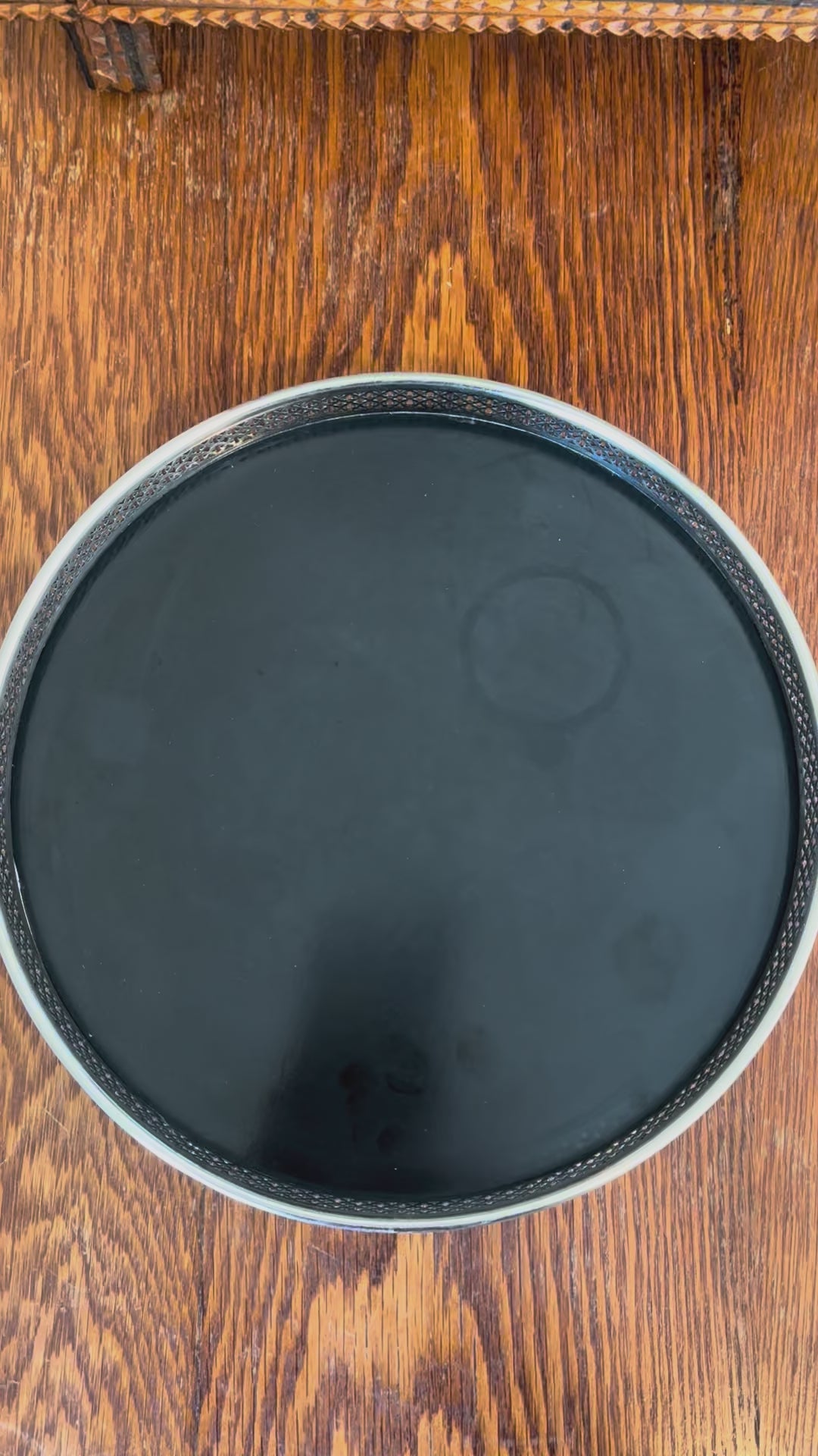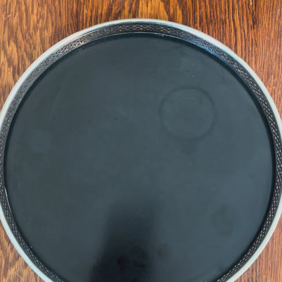 Vintage MCM Black Formica and Silver Trim Tray