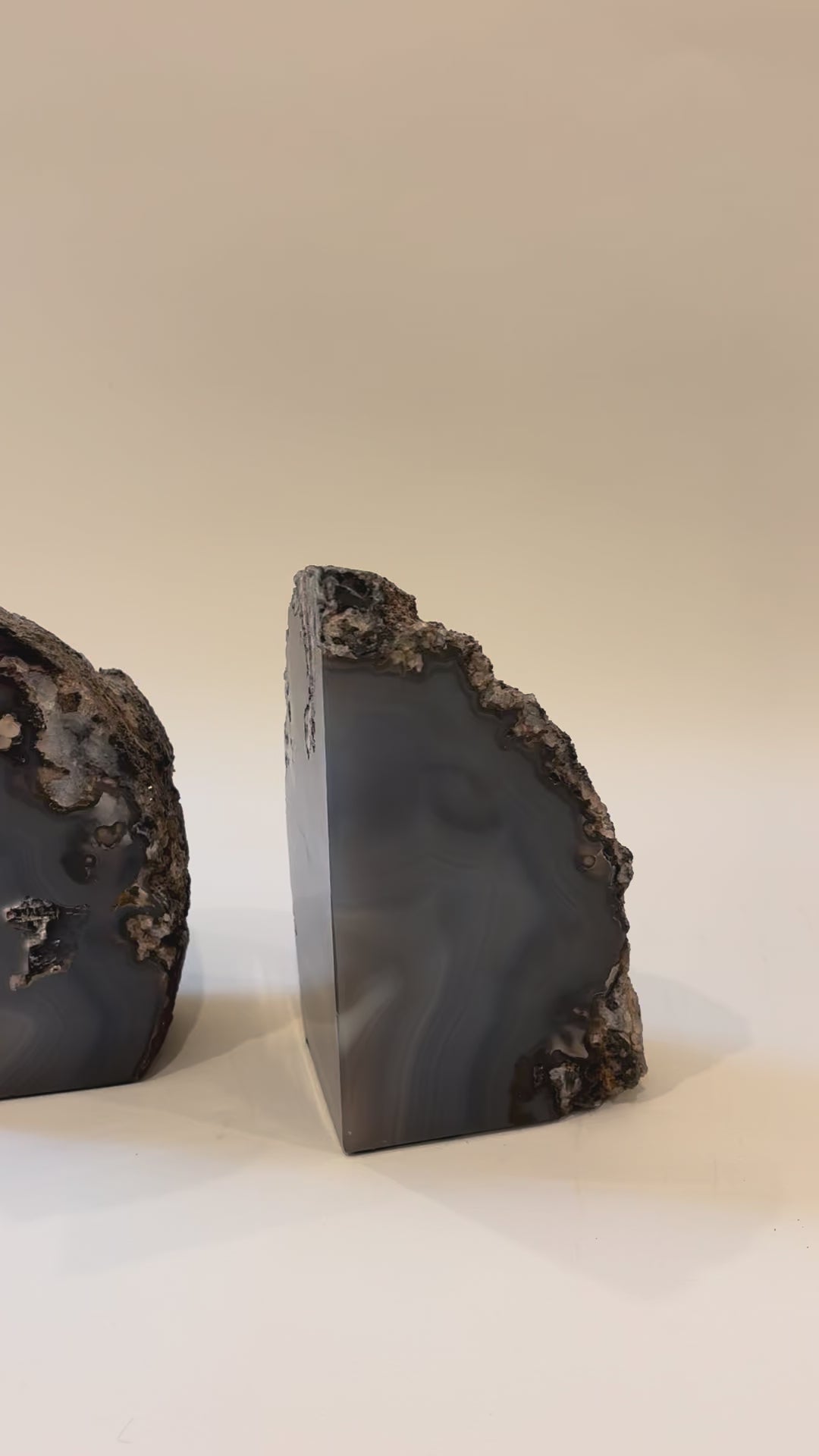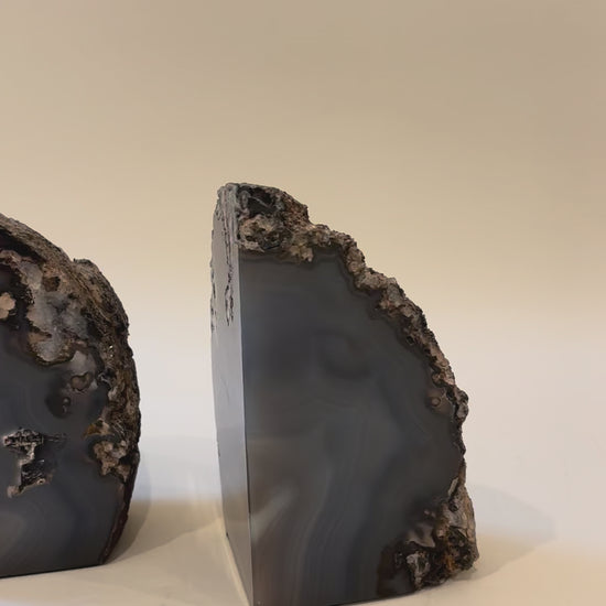 Vintage pair of large geode bookends. Stunning neutral tones that will add an earthy element to your bookshelf. Each is roughly 6" tall and 3" wide and deep.